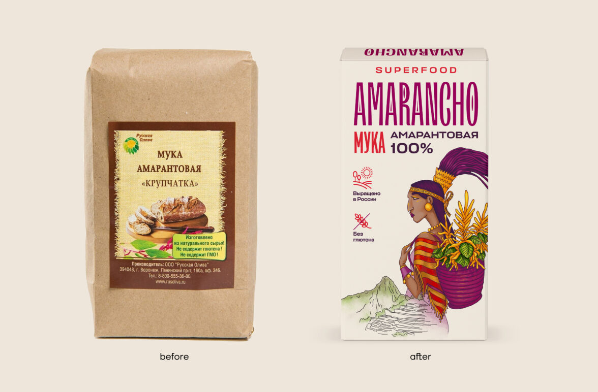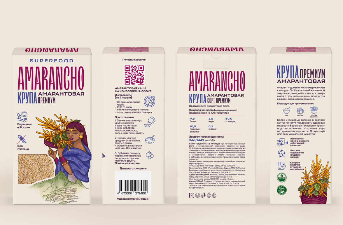 Необходимо было создать массовый бренд продуктов из амаранта, который стал бы частью продуктовой корзины целевой аудитории. Важно было, чтобы коммуникации на упаковке помогали покупателям включить продукты из амаранта в свою жизнь. Ohmybrand были рады открыть всю пользу амаранта для современных покупателей.