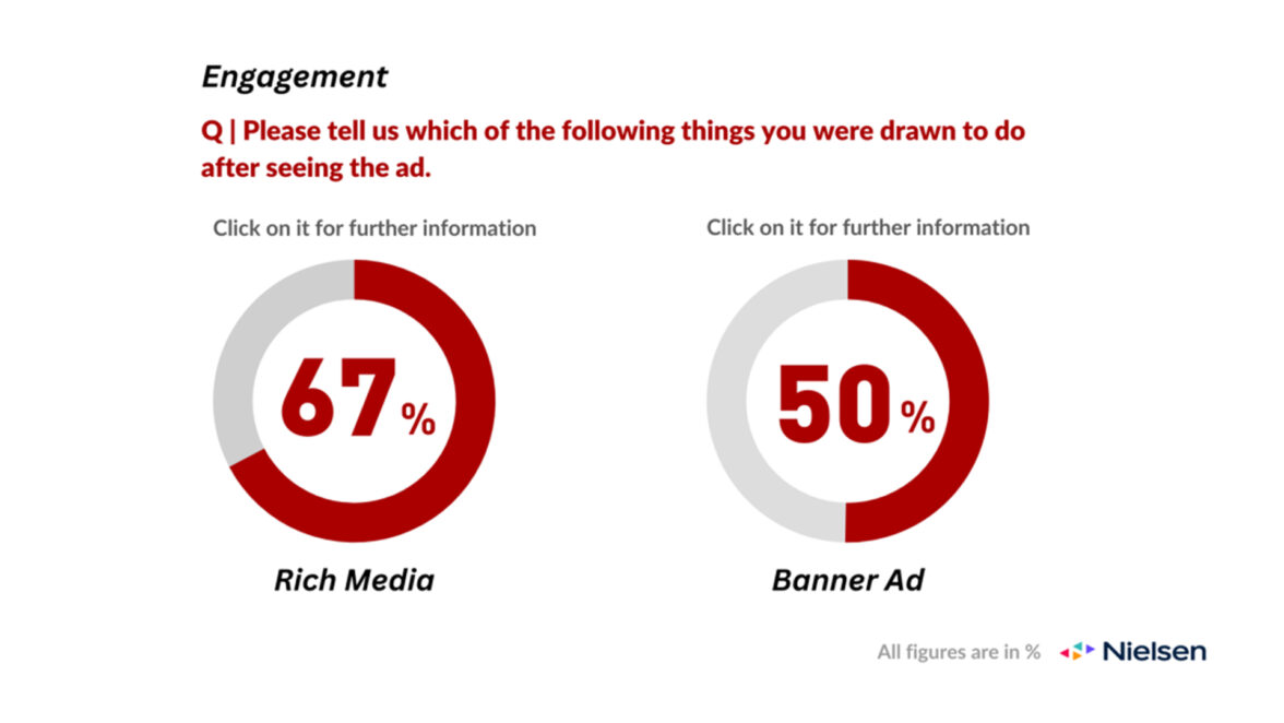 Исследование Nielsen показывает, что рич-медиа чаще мотивирует пользователя кликнуть на кнопку для получения дальнейшей информации