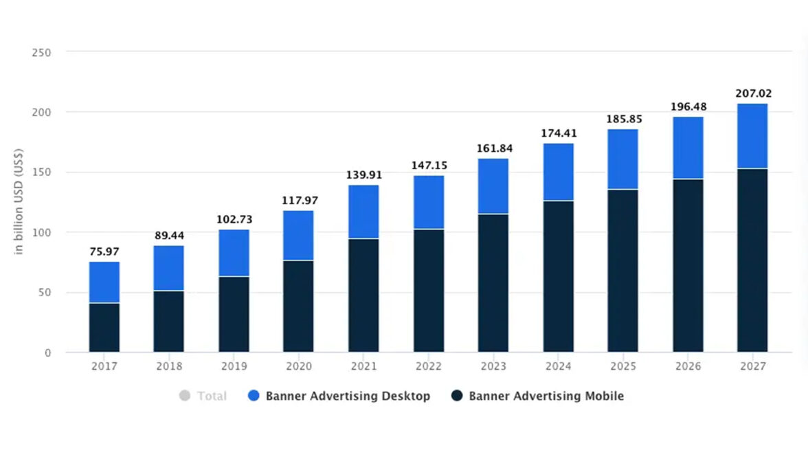 Прогноз роста расходов на баннерную рекламу, согласно исследованию Statista