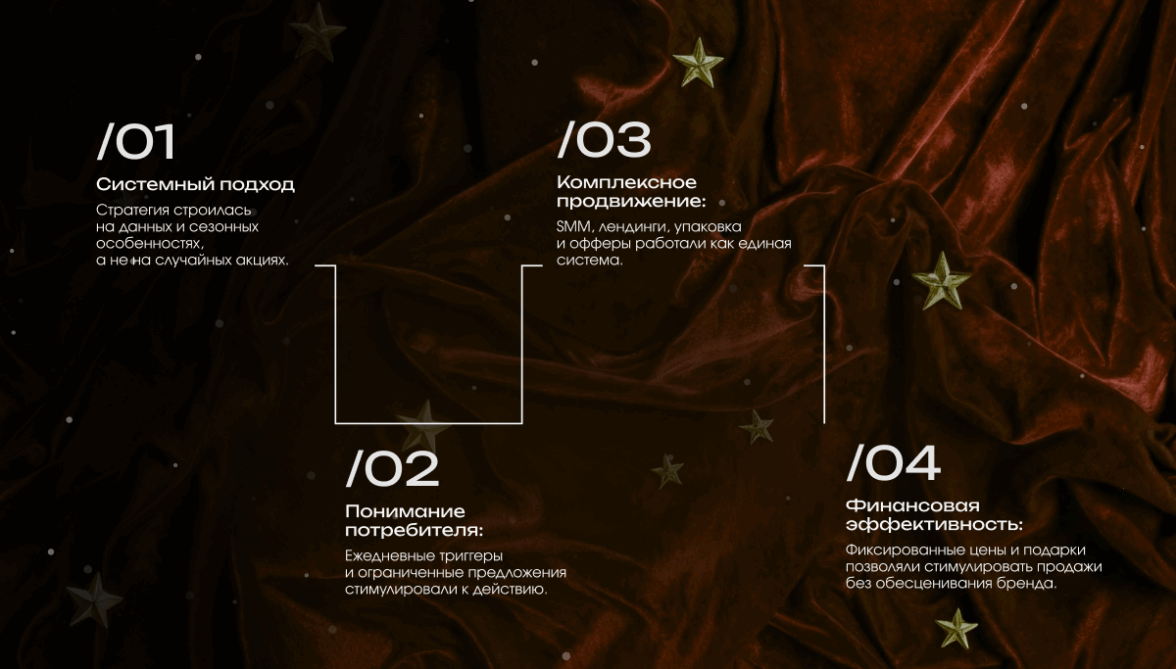 Декабрьские кампании показали, как продуманная стратегия влияет на реальный результат. Ниже — ключевые показатели, отражающие эффективность внедрённых механик ↓