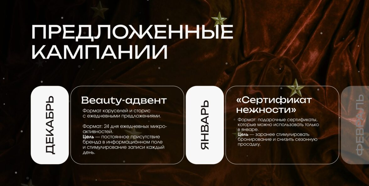 Такой подход позволил салону получать деньги заранее и гарантировал стабильный поток клиентов в январе.