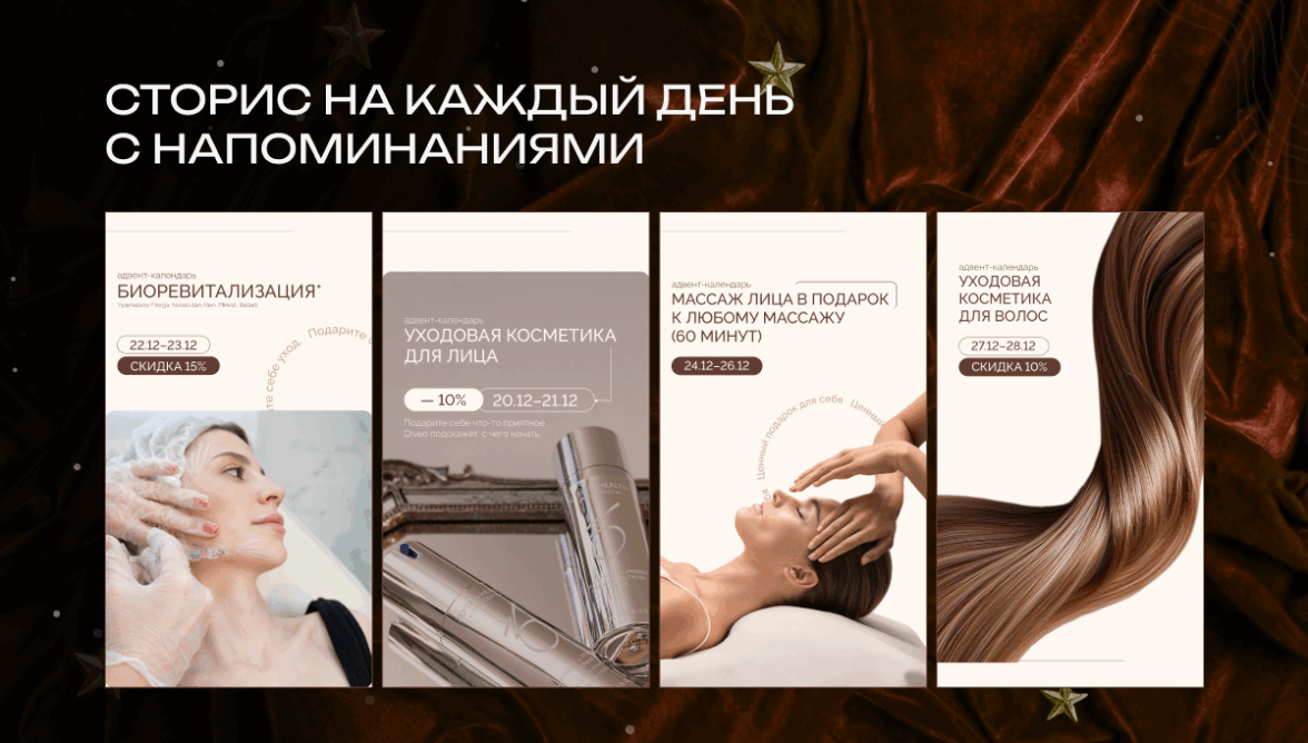 Подобная механика отлично масштабируется не только для салонов красоты, но и для клиник, фитнес-студий, студий массажа и любых услуг с сезонными провалами.