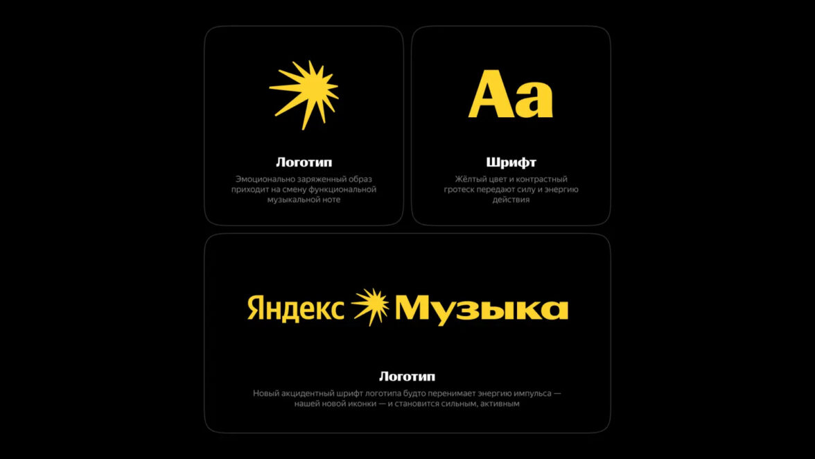 Центральным графическим элементом стал яркий импульс, который символизирует «момент воодушевления пользователя от чутко подобранной для него музыки». Шрифт «Яндекс Музыки» стал контрастным. В сервисе подчеркнули, что «в этом есть своя метафора» — он взаимодействует с логотипом и отражает игру света и тени. Ключевым цветом в новой айдентике остался жёлтый цвет.