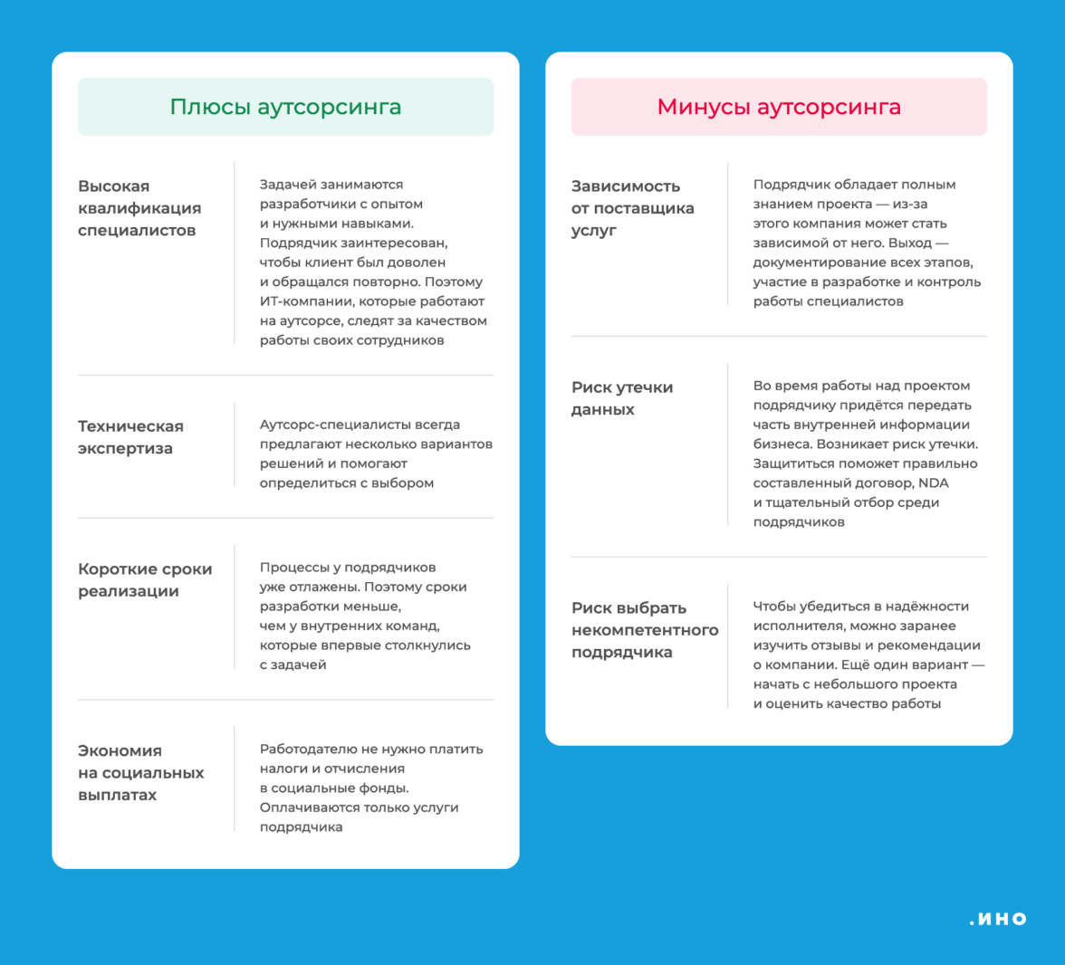 Перед тем, как решить, нужен ли аутсорсинг, компании взвешивают все «за» и «против»