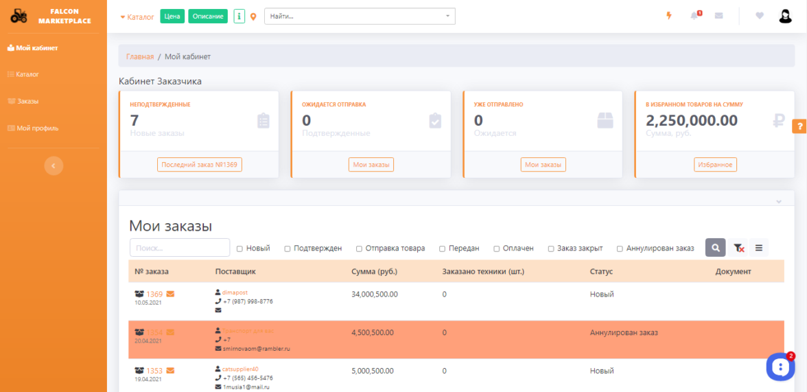 Также смотрите демо решение Falcon Service — сервис личных кабинетов для клиентов компании.