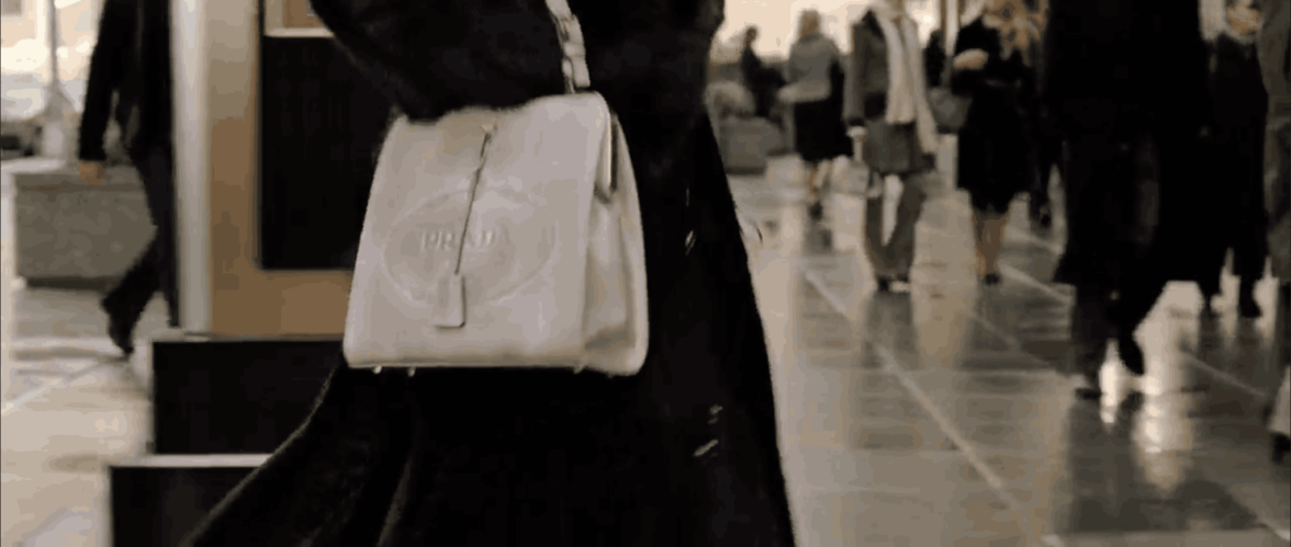 В первых кадрах главный редактор модного журнала Миранда Пристли входит в кадр с сумкой Prada.