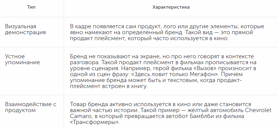 Виды продакт-плейсмента