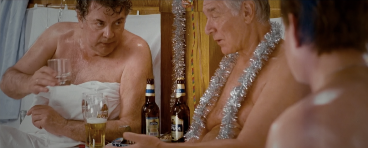 Также герои пьют пиво, рекламу которого тогда ещё не запрещали. В кадре несколько раз — бутылки и лого «Старый мельник».