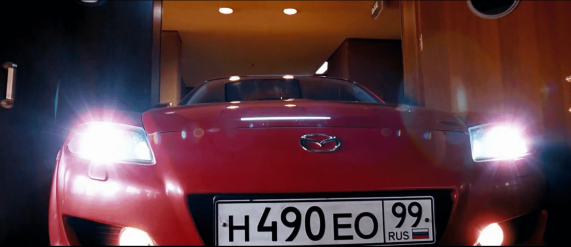 Если в «Ночном дозоре» ведьма Алиса катается по Москве на Audi, то в «Дневном дозоре» взлетает и едет по фасаду и коридорам гостиницы «Космос» уже на Mazda.