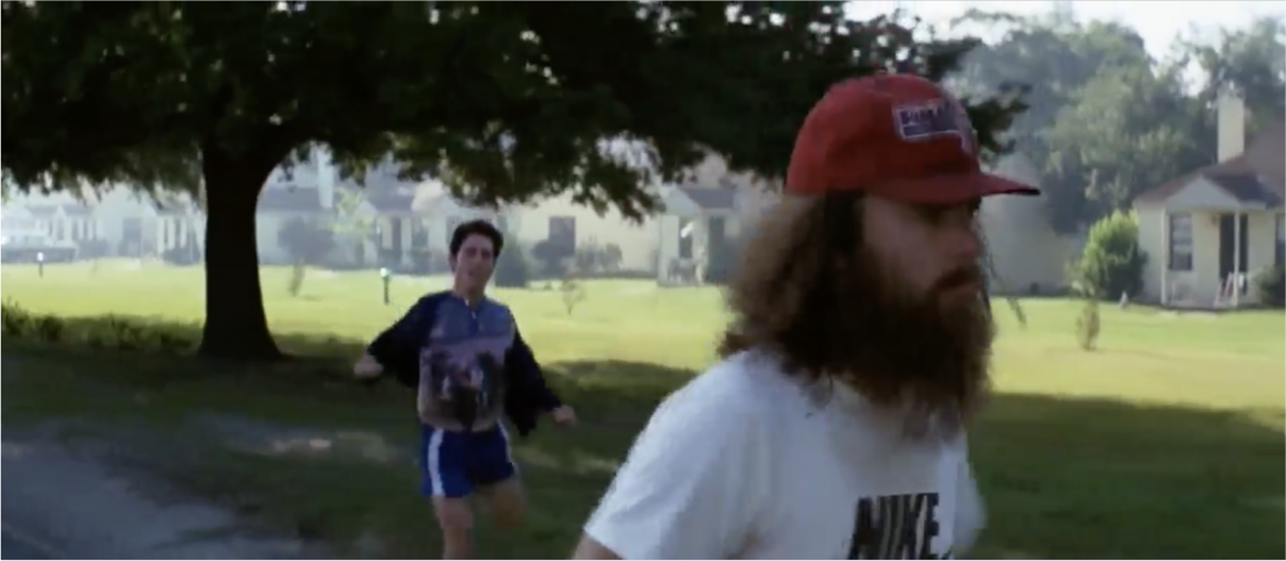 Бежит Форест в кроссовках и экипировке Nike, что нативно вписывается в сюжет.