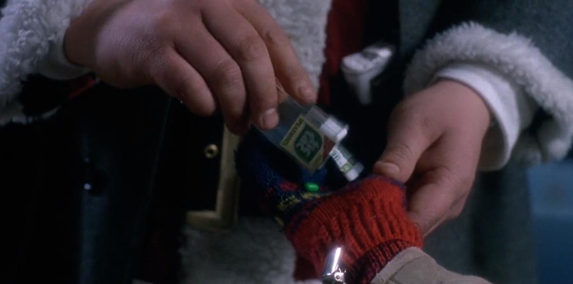 Санта-Клаус угощает Кевина Tic Tac вместо конфет, которые у него закончились.