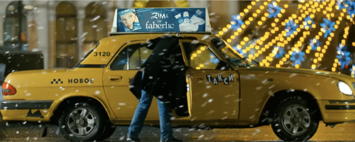 В кадре также появляется реклама пива «Бочка» и косметика Faberlic.