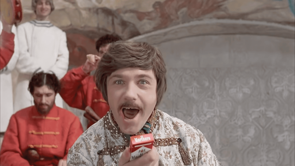 Реклама в кино была даже в СССР. Обычно в кадре мелькали сигареты и алкоголь. В фильме «Иван Васильевич меняет профессию» Жорж Милославский сначала нашёл в квартире дорогой иностранный вермут и виски, а в прошлом спел с пачкой Marlboro в руке.