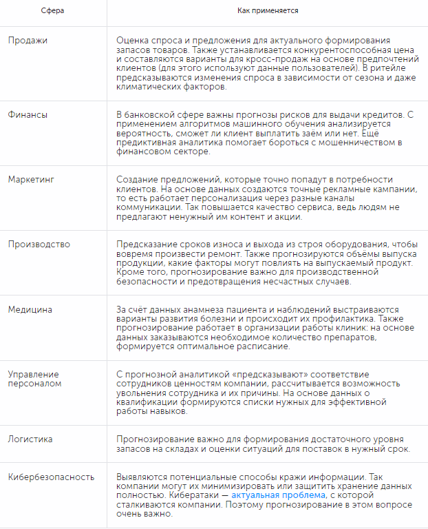 В каких сферах используют прогнозную аналитику