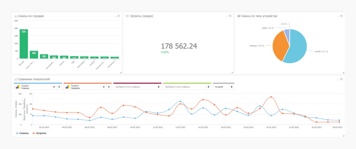 Собранные данные нужно правильно визуализировать. Для этого используются дашборды — интерактивные отчеты, которые показывают ключевые метрики в реальном времени.