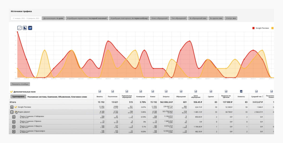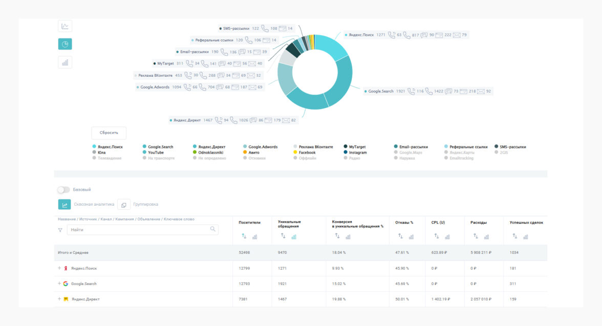 Показывает реальную картину продаж. Без иллюзий и завышенных цифр. Например, заявки могут сыпаться из таргетированной рекламы, а крупные клиенты приходят из SEO — важно понимать, что работает лучше.