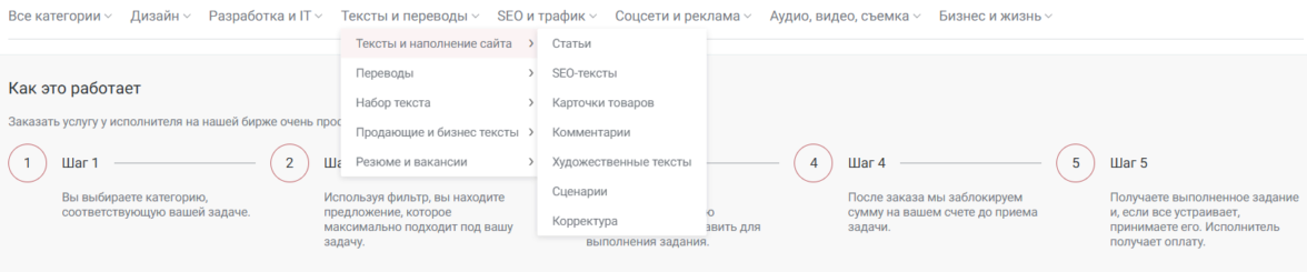 Множество услуг для бизнеса. В системе представлено более 7000 услуг и 170 категорий: можно найти исполнителей для разработки и IT, создания дизайна, аудио и видео, написания текстов, SEO, ведения социальных сетей и рекламных кампаний, решения других задач для бизнеса и жизни.