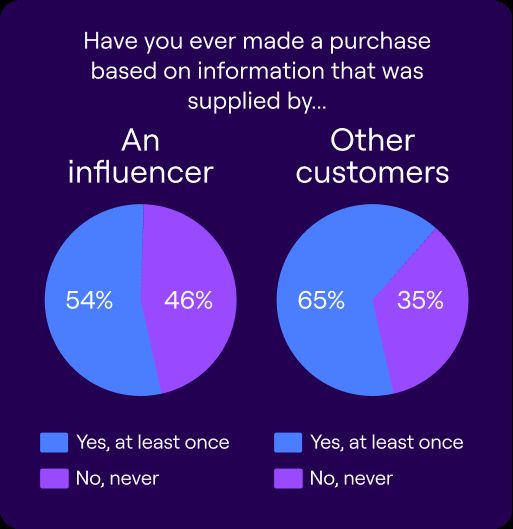 Akeneo опросила 18 тыс. потребителей в восьми странах (США, Великобритании, Германии, Франции, Нидерландах, Швеции, Австралии и Италии) о том, что влияет на их решения о покупках. Отзывы других покупателей оказались популярнее рецензий блогеров с показателями 65% и 50% соответственно.