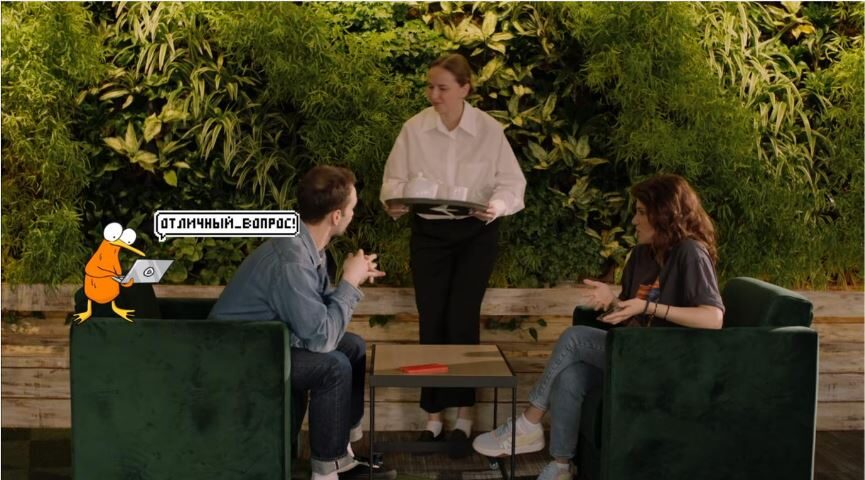 Для нас, проектных менеджеров, в процессе работы над спецпроектом нет такого понятия, как не моя задача. Мы понимаем, что готовы подстраховать команду в любом деле, в том числе войти в кадр. В первый раз это произошло случайно: актёр эпизода форс-мажорно выбыл, подбирать нового не было ресурсов и времени. И я совершенно легко и естественно сказала, что смогу его заменить и сыграть то, что нужно.