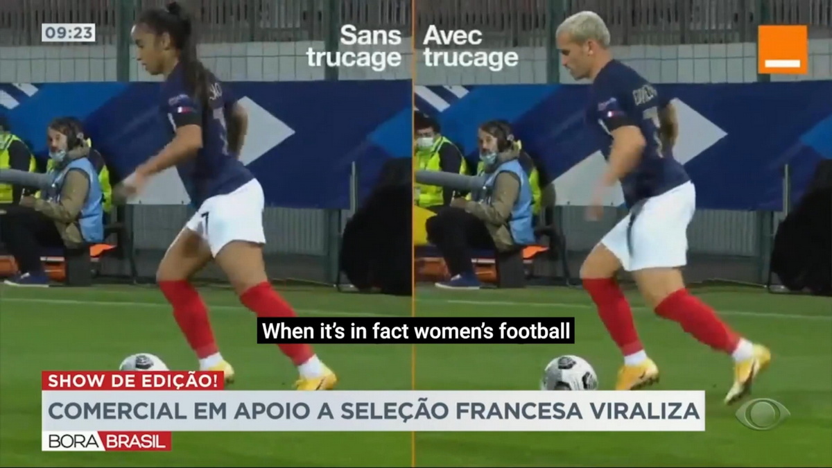 В первой части клипа показаны несколько острых голевых моментов якобы с участием звезд-мужчин. Во второй CGI-пелена спадает. Оказывается, что героями всех острых эпизодов, показанных в первой части, на самом деле были футболистки из женской сборной Франции.