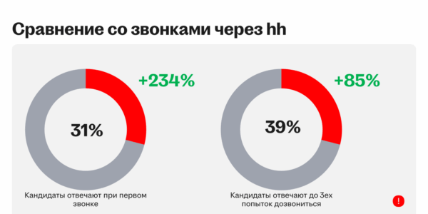 На российском рынке до сих пор не существовало среднего показателя, с какой попытки работодатели могут дозвониться до соискателей. Аналитики hh.ru провели исследование и открыли такой бенчмарк. А потом сравнили с ним показатели по дозваниваемости через звонки hh.ru. Выяснилось: дозвониться до кандидата через hh.ru получается в разы чаще, чем с мобильного телефона.