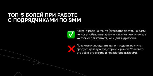 Мы помогаем собственникам бизнеса и топ-менеджерам компаний навести порядок в маркетинговых, креативных, digital- и SMM-командах, внедряя прозрачные процессы, эффективное управление, четкий контроль и правильное делегирование.