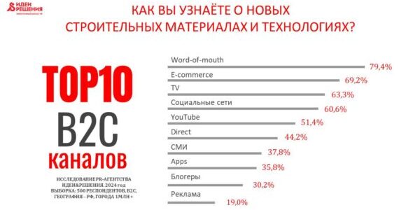 Исследование* PR-агентства Идеи&Решения показало, что сарафанное радио — канал коммуникаций № 1 на строительном рынке. 79,4% частных потребителей узнают о новых строительных материалах и инженерных системах из «уст в уста». Среди профессиональных строителей и инженеров советы — основной источник информации о новинках только в 60% случаев.