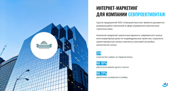 Создаём лидеров отраслей при помощи передовых технологий интернет-маркетинга. Обеспечим высокую конверсию, трафик и первые позиции в поисковых системах «Яндекс» и Google.
