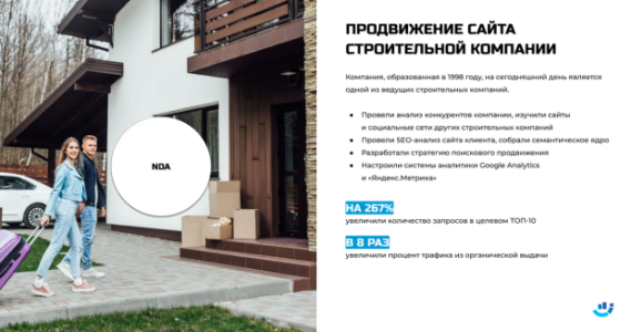 Создаём лидеров отраслей при помощи передовых технологий интернет-маркетинга. Обеспечим высокую конверсию, трафик и первые позиции в поисковых системах «Яндекс» и Google.