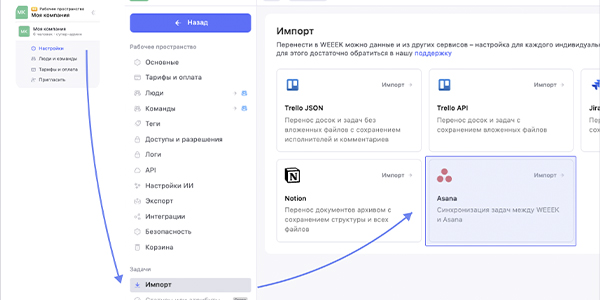 Импорт из Jira, Trello, Asana, Notion и ClickUP