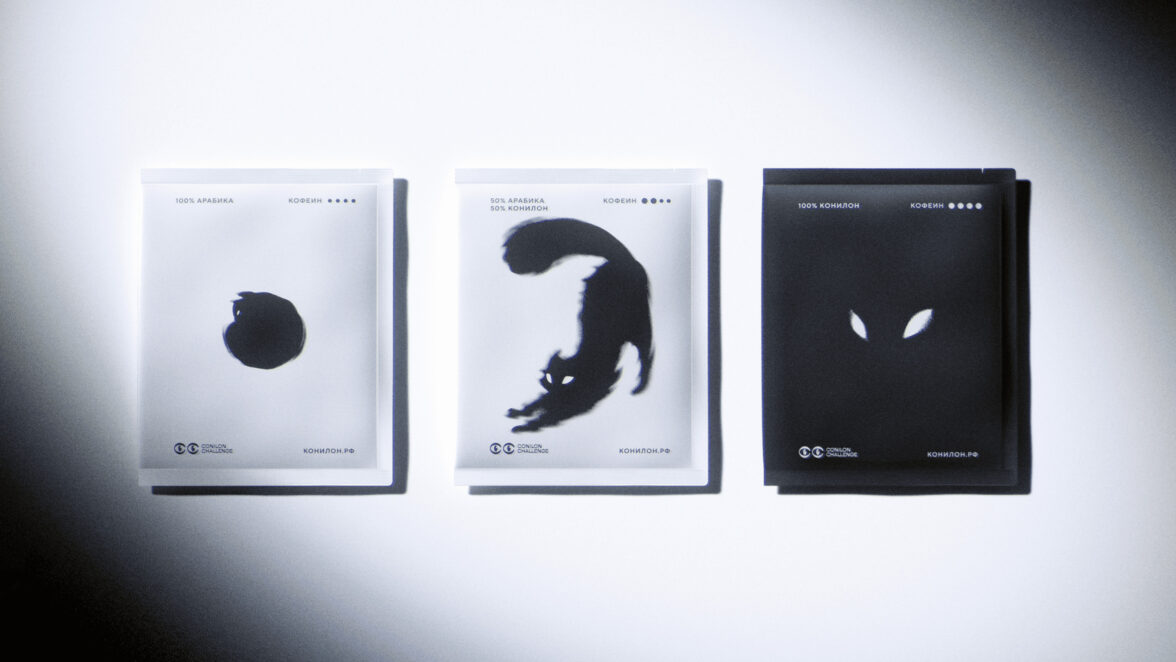 Больше кофеина — больше кота. В упаковке шесть дрип-пакетов с тремя сочетаниями зерна — арабика, арабика и конилон (50:50) и только конилон (100%). В зависимости от процентного содержания конилона, а соответственно и кофеина, меняется и состояние кота на иллюстрациях: он только проснулся, потягивается или полностью сосредоточен на цели.