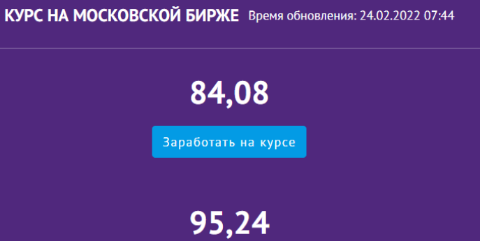 Курс валют на Мосбирже составил 84 руб. за доллар и 95 руб. за евро. В понедельник эти показатели были на уровне 75,7 руб. и 86,1 руб. соответственно.
