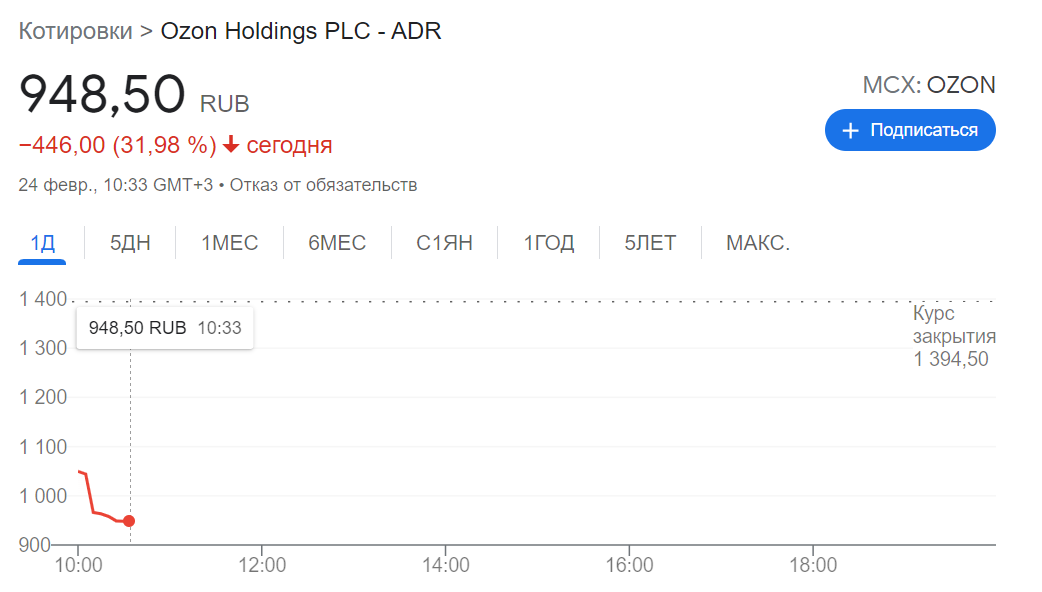 Московская биржа приостановила торги вскоре после начала военных действий на территории Украины. В 10 утра по мск торги возобновились дружным падением всех российских «голубых фишек». По состоянию на 11 утра их стоимость в среднем обвалилась на 39%. Их больше никто не покупает, общий тренд — продавать. Индекс Мосбиржи рухнул на 33%, обновив минимумы с ноября 2020 года. По некоторым подсчетам, ситуация сопоставима с обвалом 2008 года. Как снижалась стоимость крупнейших российский технологических компаний, экосистем, маркетплейсов и курса рубля — в материале ADPASS.