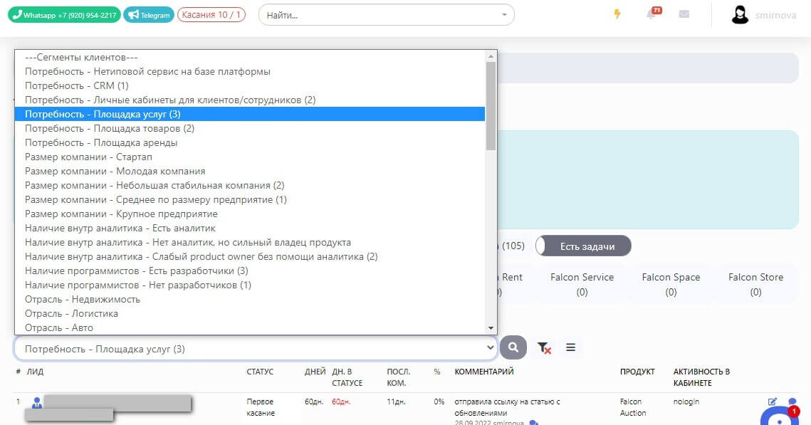 P.S. Сейчас механизм сегментации есть в нашей внутренней системе, планируем его также внедрить в решения Falcon Service и Falcon CRM.