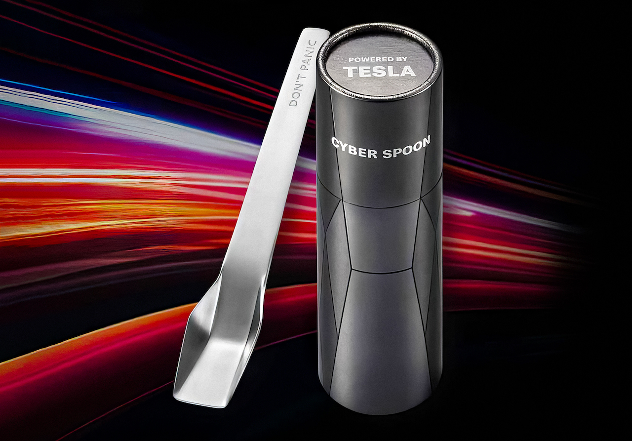 Совместно с китайским McDonald’s Tesla выпустила ограниченным тиражом «киберложку» (CyberSpoon) для мороженого из нержавеющей стали в футляре, похожем на элементы аккумуляторов Tesla. На ложке выгравировано «Без паники». В соцсетях уже сочли этот призыв обращением ко всем, кто с 2019 года ждет начала серийного производства электропикапа Cybertruck.