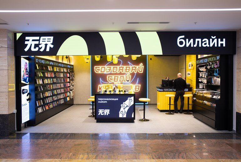 «Билайн» открыл экспериментальный салон в ТРЦ «Афимолл Сити» в Москве: офис с обновлённым дизайном и расширенным ассортиментом, визуально опирающийся на азиатскую культуру. В оформлении используются азиатские символы со смыслом «без рамок / без границ», а фокус смещён с тарифов на аксессуары и товары для самовыражения: от чехлов до попсокетов, джибитсов и брелоков.