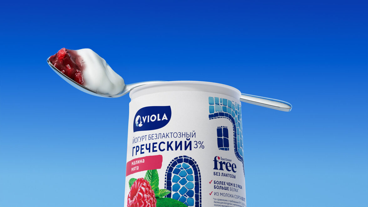Ohmybrand разработали дизайн для линейки безлактозных греческих йогуртов Viola в концепции «греческий город».