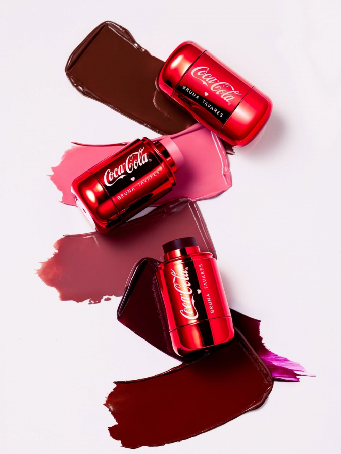 Coca-Cola выпустила лимитированную коллекцию косметики вместе с бьюти-брендом Bruna Tavares. Визуально коллекция собрана на ключевых кодах Coca-Cola: красный цвет, формы банки/бутылки, «холодная» эстетика. Разработка заняла больше года.