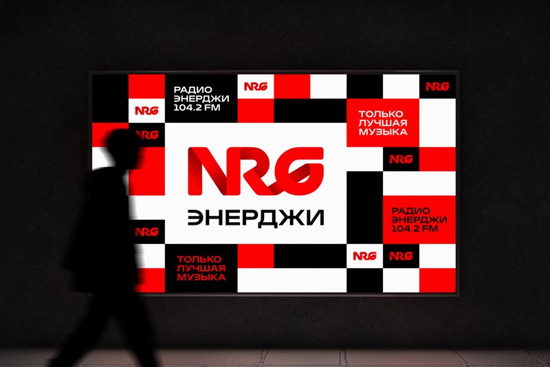 Радиостанция «Энерджи» (Radio Energy) — современная музыкальная станция, работает с 2006 года обновила айдентику: NRJ стало NRG, а логотип собрали из изгибов красной ленты как ключевого элемента системы. Проект сделала Студия Артемия Лебедева.