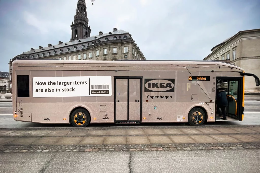 IKEA в Копенгагене оформила автобусы, остановки и строительные ограждения в виде фирменных коробок. Так они сообщили, что в городском магазине теперь доступны и крупногабаритные товары. Кампания обошлась без текстовых объяснений и продуктовых офферов — сработал узнаваемый визуальный код бренда.