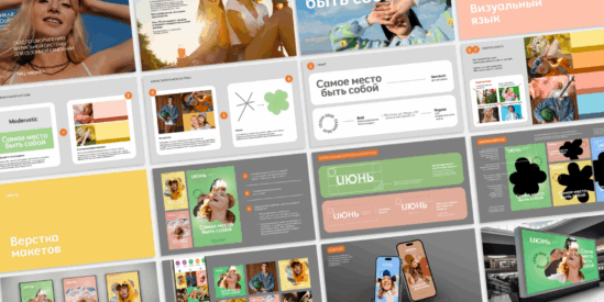Команда SICHKAR GROUPобновила визуальную концепцию и позиционирование ТРЦ «Июнь» в Мытищах без смены имени. Цели: выделиться, привлечь новую аудиторию и закрепиться как городской культурный центр. В основу положили слоган «Самое место быть собой» и модульную дизайн-систему: мягкие формы, нежная палитра, выразительная типографика, «маски» как элементы графики. Собрали всё в бренд-гайд, а систему уже применили в первой коллаборации с художником Витей Повезло («Цветочный кот»).