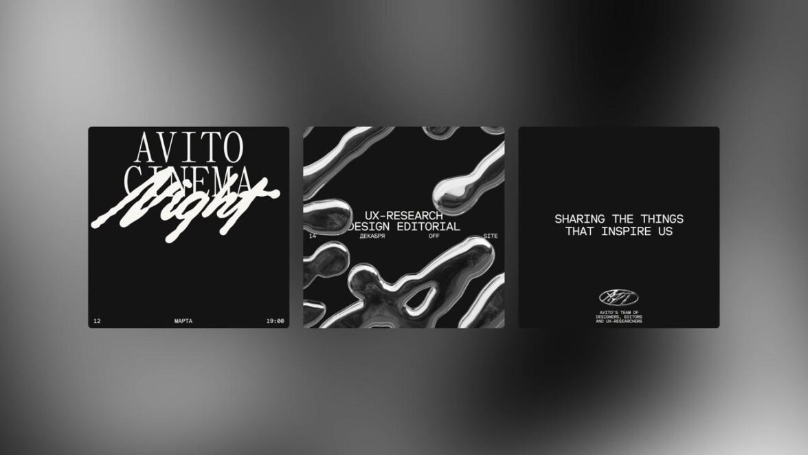 Avito Design Team от ESH. Давайте забудем, насколько необычен стиль для Авито (это очень круто, просто сейчас не про то). Адское, интересное сплетение трёх, а может быть где-то четырёх шрифтов. Моноширинность, наложение, игра с хаосом и пустотой, разная выключка. Всё это задаёт то самое нужное настроение. Я помню и про рыцарскую эстетику, любимый многими dark fantasy core. Но что творит здесь типографика!