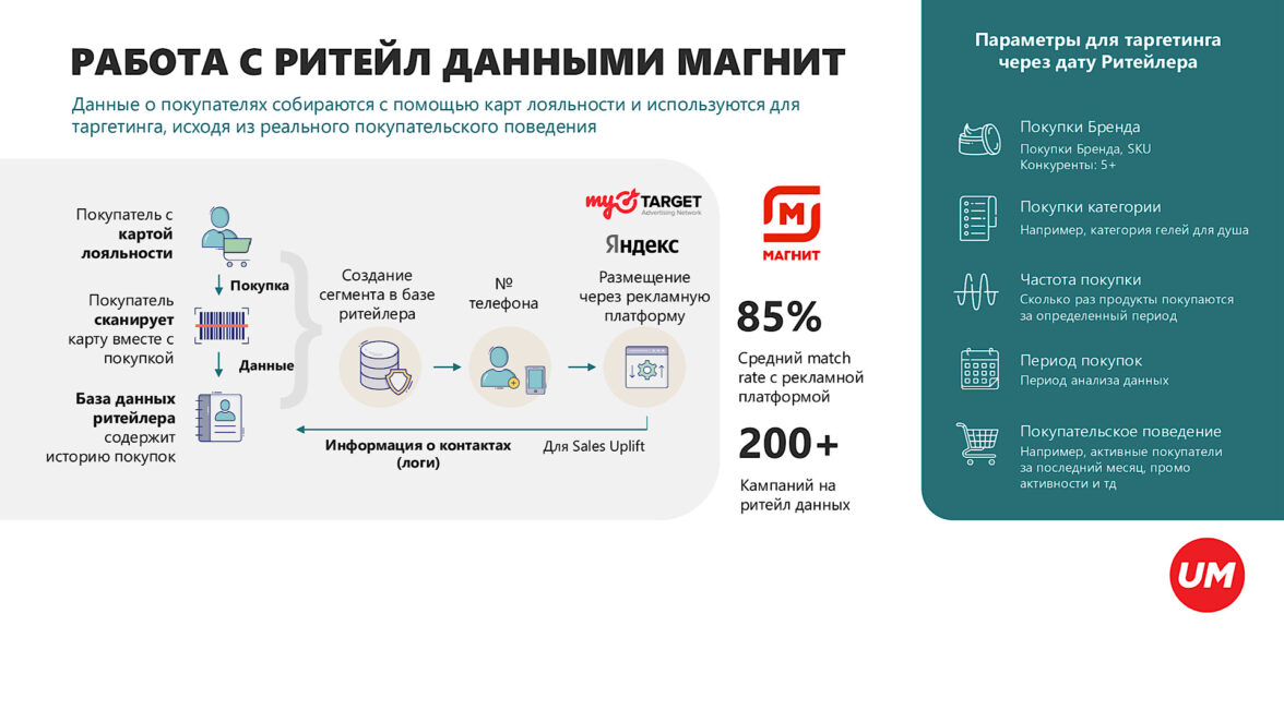 Подход, предложенный агентством UM, опирался на максимальное использование данных партнёрской сети: в кампании были задействованы сегменты покупателей, сформированные «Магнитом» на основе чековой истории и поведенческой модели. Это обеспечило точечный таргетинг — без потерь на нерелевантную аудиторию — и позволило выстроить медийную механику, ориентированную на стимуляцию покупки здесь и сейчас.