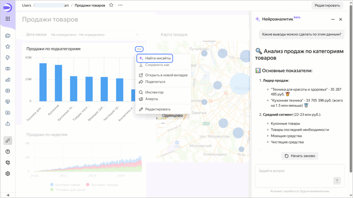В BI-решении от Яндекса есть отдельная фича — Нейроаналитика.