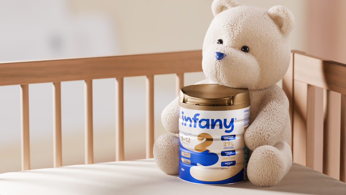 Разработанное креативной командой DDVB название — Infany — отсылает к самому счастливому периоду материнства, к позитивным эмоциям, полученным от времени, проведенным с малышом.