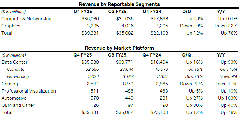 За весь прошлый год рост выручки Nvidia составил 114%, ее объем увеличился до $130,5 млрд. Операционная прибыль выросла на 147% до $81,5 млрд, чистая прибыль — на 145% до $73 млрд.