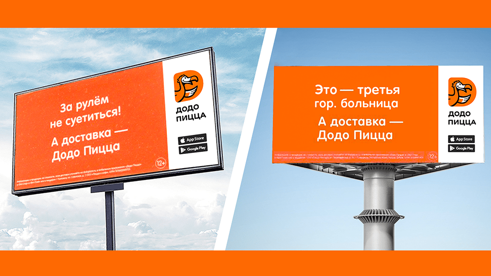 О заботе тоже не забывают. На билбордах Додо напоминают водителям перестроиться в другой ряд, соблюдать ПДД… И заказать пиццу с доставкой, когда те доберутся до места.