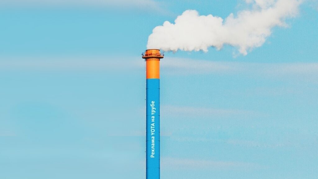 Стандартными форматами компания не ограничилась. Баннеры Yota начали появляться в неожиданных местах, а по телевизору показали ролик с тишиной — и фразой о рекламе Yota на синем фоне.