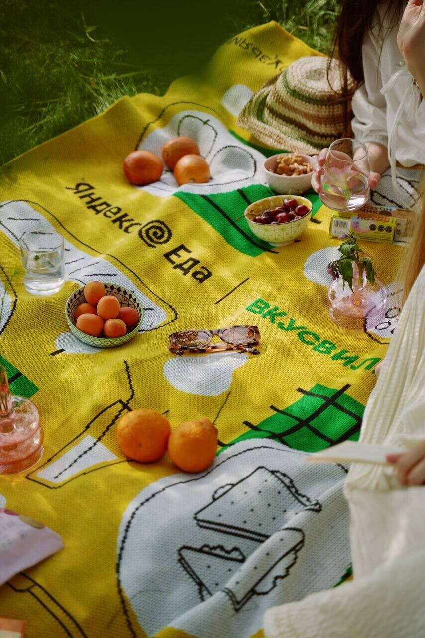 Дальше — коллабы. С кем их только не было, и всё старались красиво обыграть. Недавно выпустили с Яндексом совместный плед и продвигают идею пикников на природе с вкусной и здоровой едой.