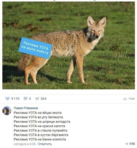 Правда, перебить собственные достижения компании теперь будет не так-то просто. Прошло уже несколько лет, а «это реклама Yota» всё еще помнят лучше, чем новые акции, хотя «ломающие шаблоны» кампании бренд выпускает регулярно. Хотя в целом Yota неплохо зацепились за эту тему и периодически развивают ее дальше.